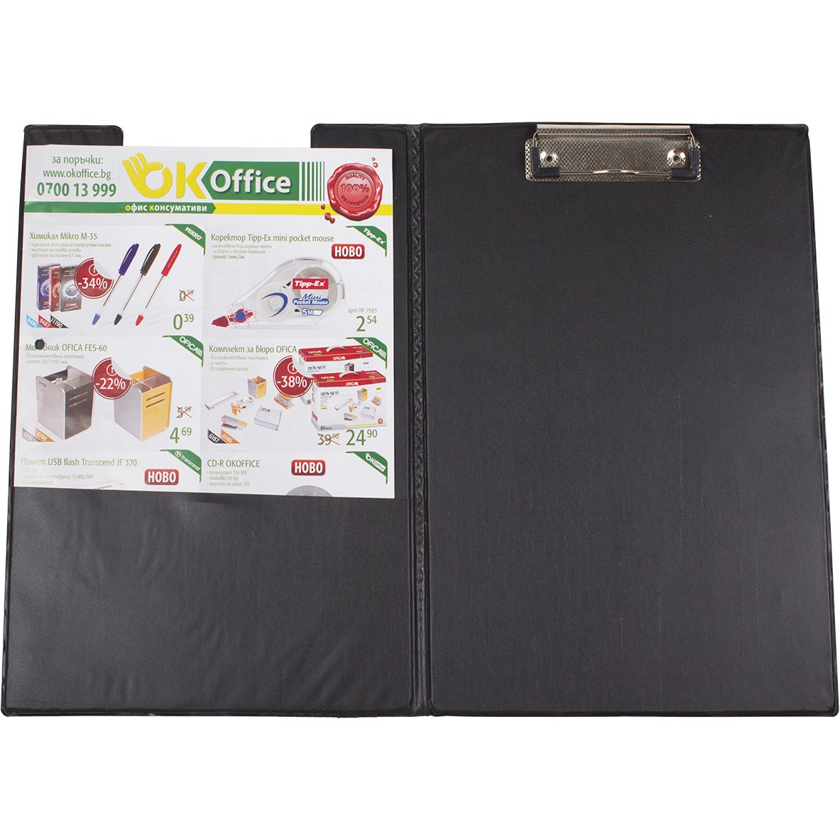 Клипборд, изработен от здрав картон, покрит с висококачествен РР полипропилен.