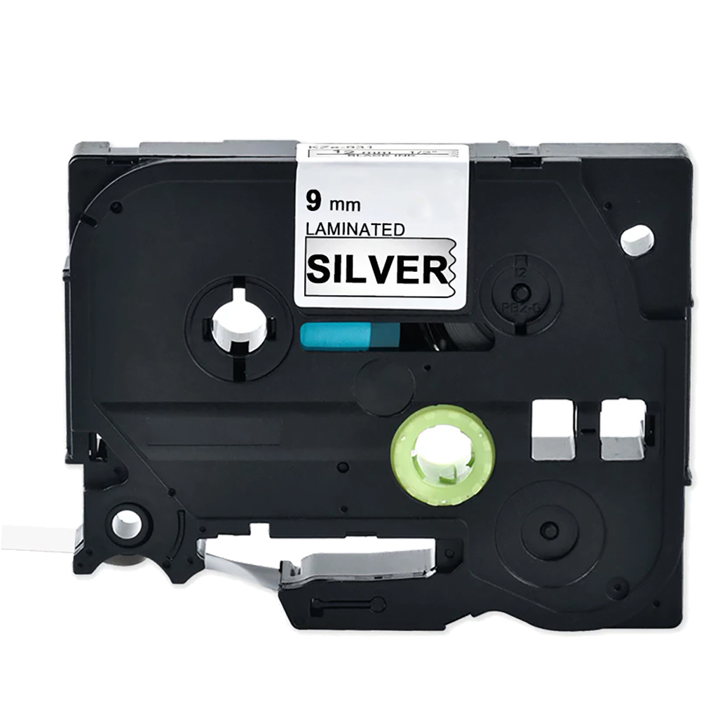 Ширина 9mm , дължина 8 метра, черен текст на сребърен фон