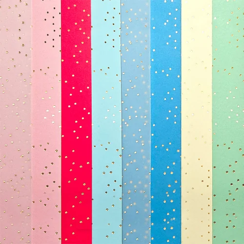 Дизайнерски блок с 12 листа картон в 6 цвята и 3 листа паус със златни точки.