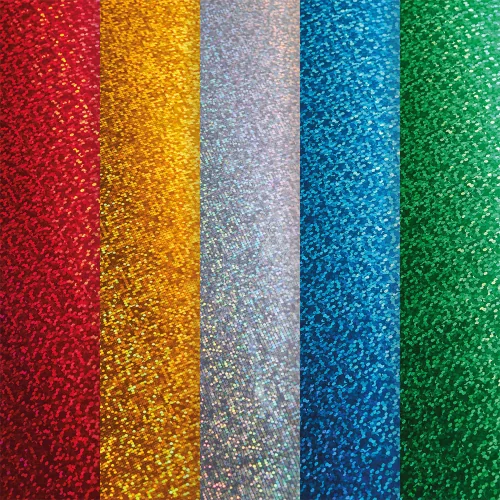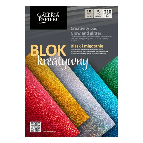 Дизайнерски блок с 15 листа картон с холографски шарки и метален блясък в 5 различни цвята.