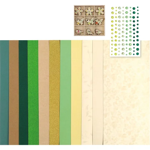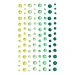 Самозалепващи декоративни елементи с формата на кръгче. Подходящи за декорация на сезонни картички, подаръчни кутии и торбички, сватбена украса и други креативни проекти. Размер: 3-6 мм Цвят: зелен Опаковка: 104 броя