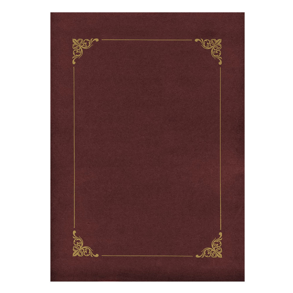 Гладък картон в цвят бордо със златиста рамка.