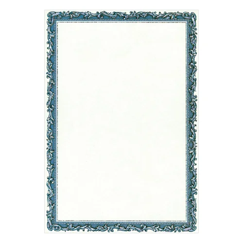 Висококачествена хартия със сатенена повърхност. За печат на елегантни сертификати, дипломи, менюта, благодарствени писма, ценоразписи. Подходяща за лазерни и мастиленоструйни принтери. Плътност: 190 g/m2 Дизайн: бял/син Опаковка: 20 листа