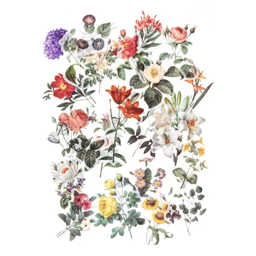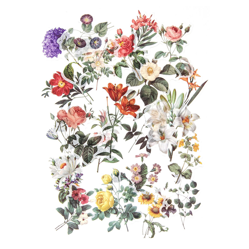 Прозрачни стикери с нежни летни цветя. Подходящи за декорация на сезонни картички, подаръци, подаръчни торбички, стъклени буркани или планери Материал: прозрачно фолио Опаковка: 53 стикера