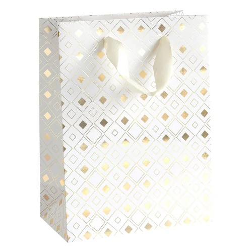 Елегантни крафт торбички за подаръци със златни диаманти. Размер: 20x8x15 см Материал: бяла хартия Опаковка: 5 броя