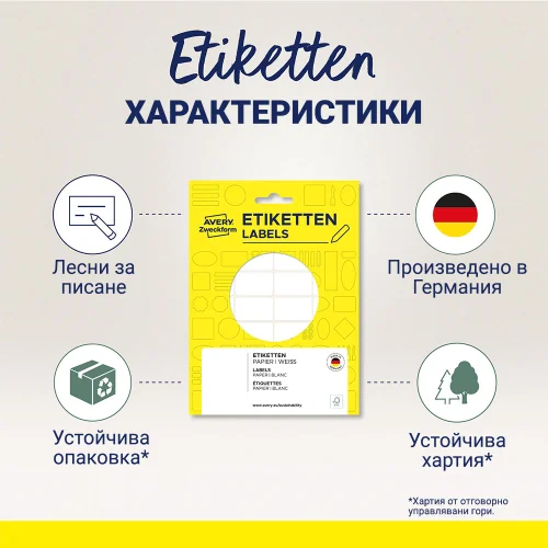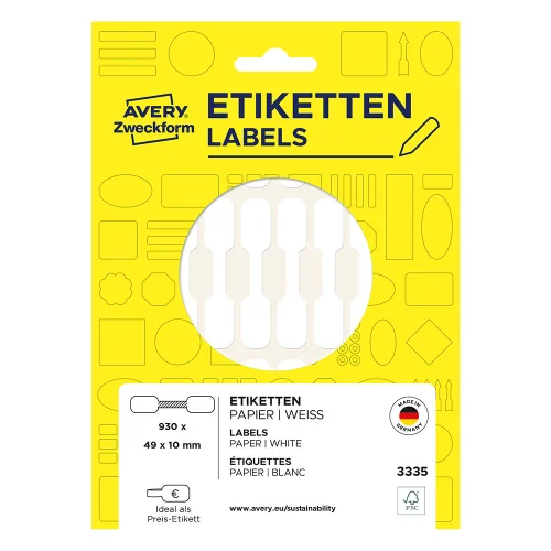 Етикетите за бижута за ръчно надписване на Avery 3335 са идеалното решение за бързо и лесно обозначаване на цени без необходимост от принтер. br> Свързващата част на етикета е без лепило, което го прави перфектен за маркиране на фини и деликатни продукти.