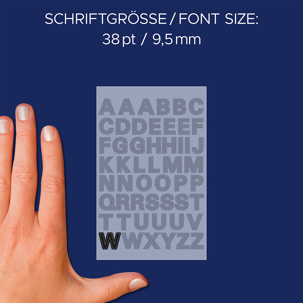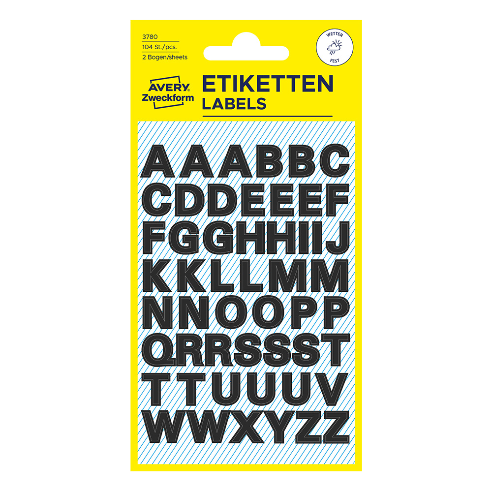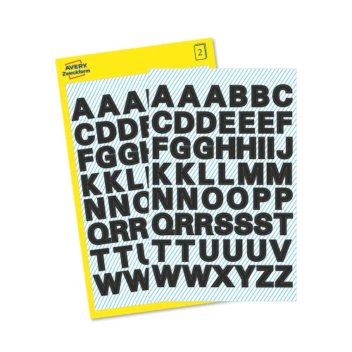 Самозалепващи черни букви Avery изработени от специално устойчиво на атмосферни влияния фолио.