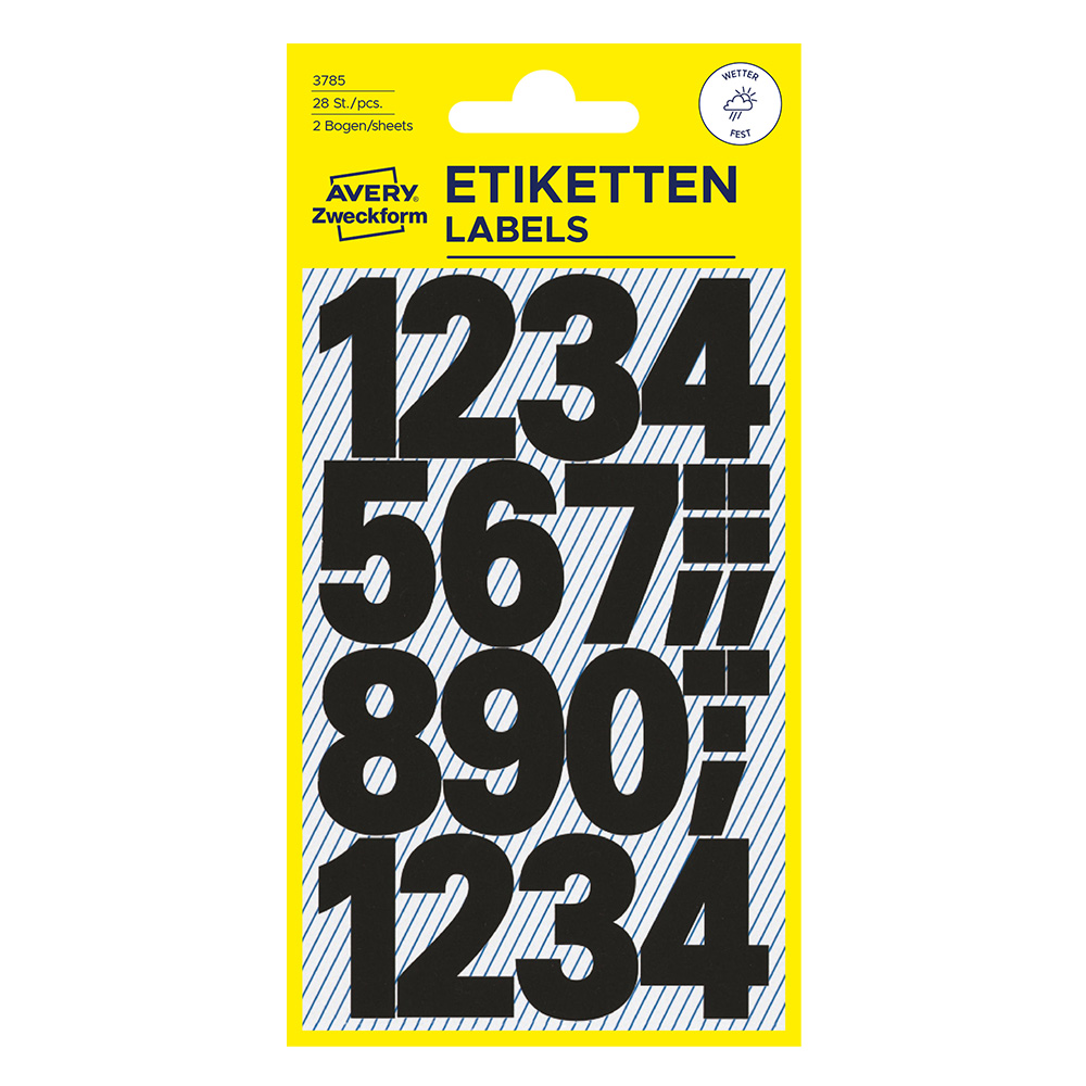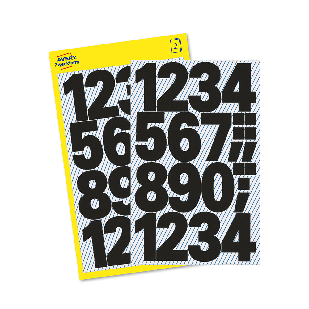 Самозалепващи черни цифри Avery изработени от специално устойчиво на атмосферни влияния фолио.