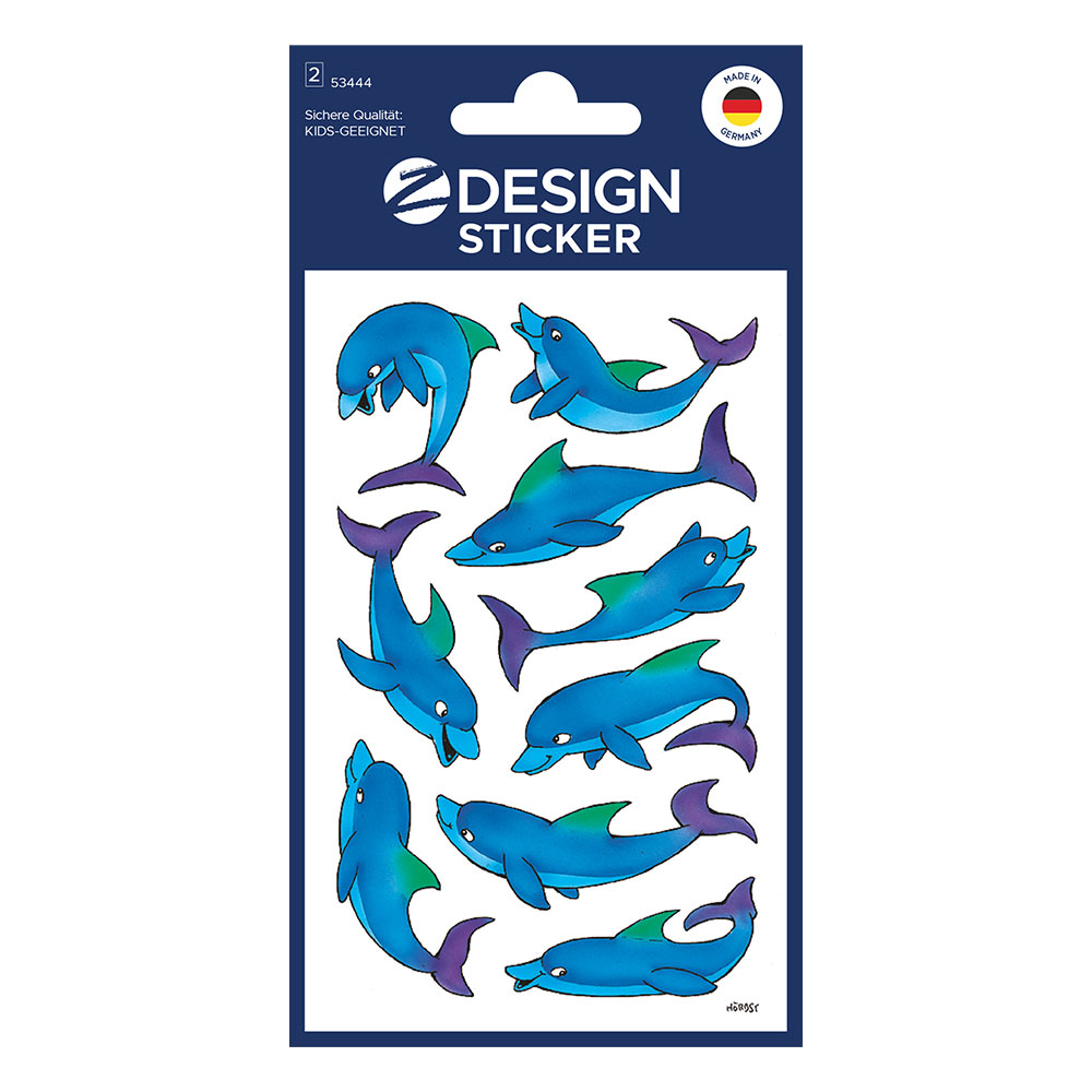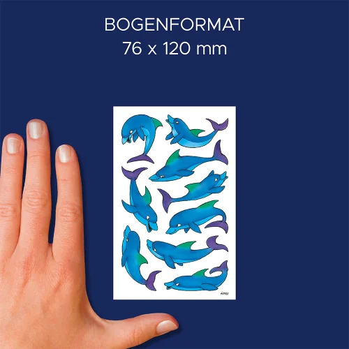 Опаковката съдържа 2 листа с 18 стикера делфини.
