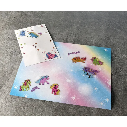 Магическите стикери с брокат на очарователни еднорози ще ви омагьосат с цветен блясък и прекрасен дизайн.