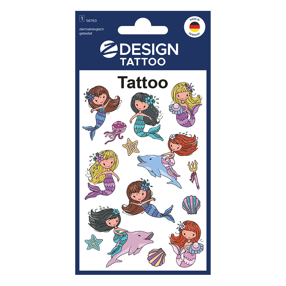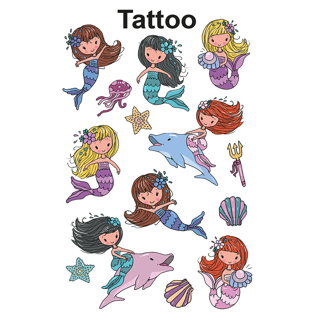 Колекция временни детски татуировки с русалки.