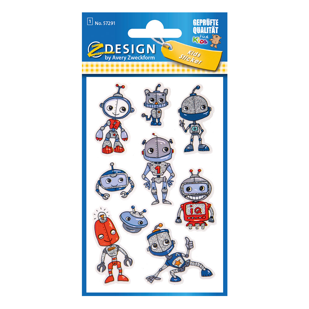 Самозалепващи декоративни стикери Avery с роботи и брокат.