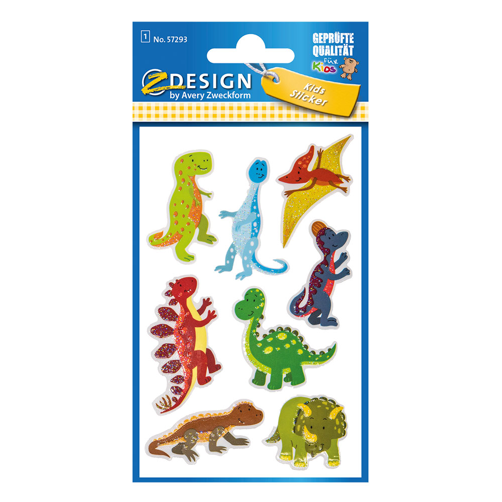Самозалепващи декоративни стикери Avery с динозаври и брокат.