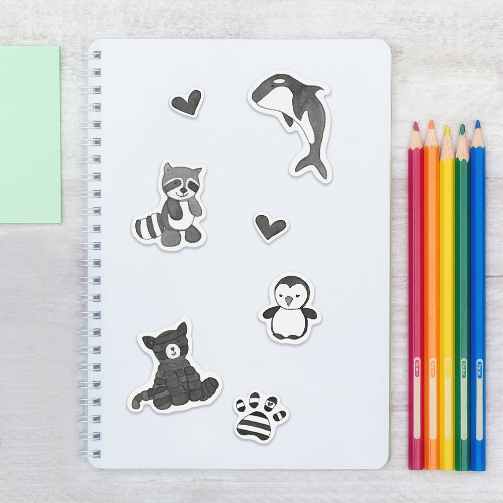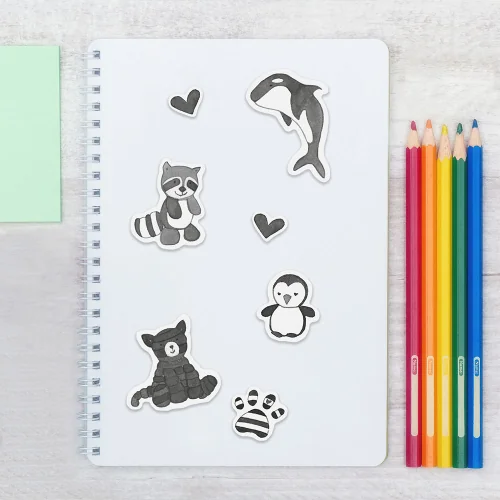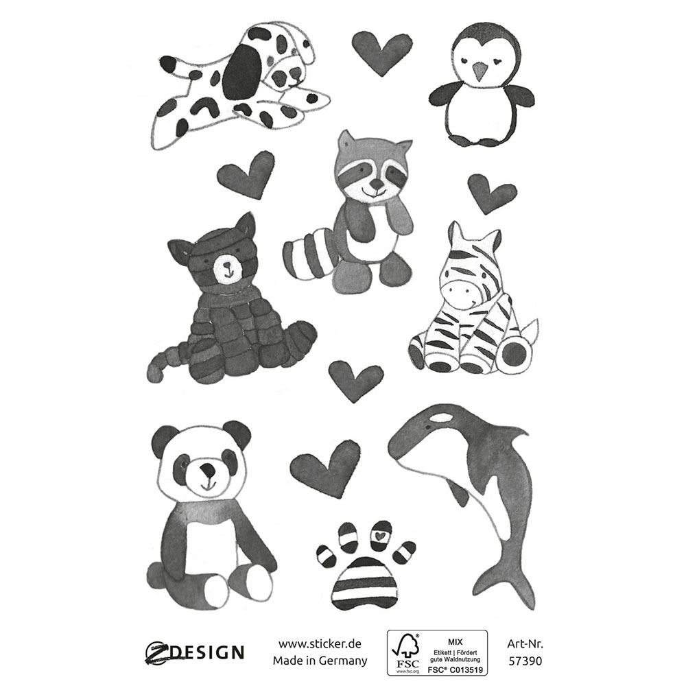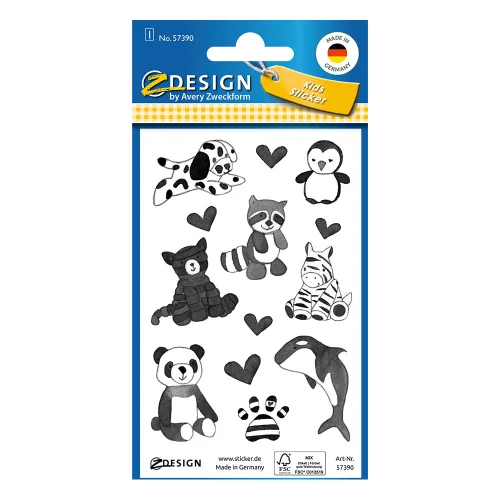 Самозалепващи декоративни стикери Avery с черно-бели животни и брокат.