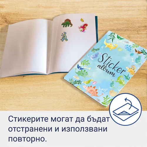 Албум за стикери Динозавър с 16 празни страници за колекциониране.