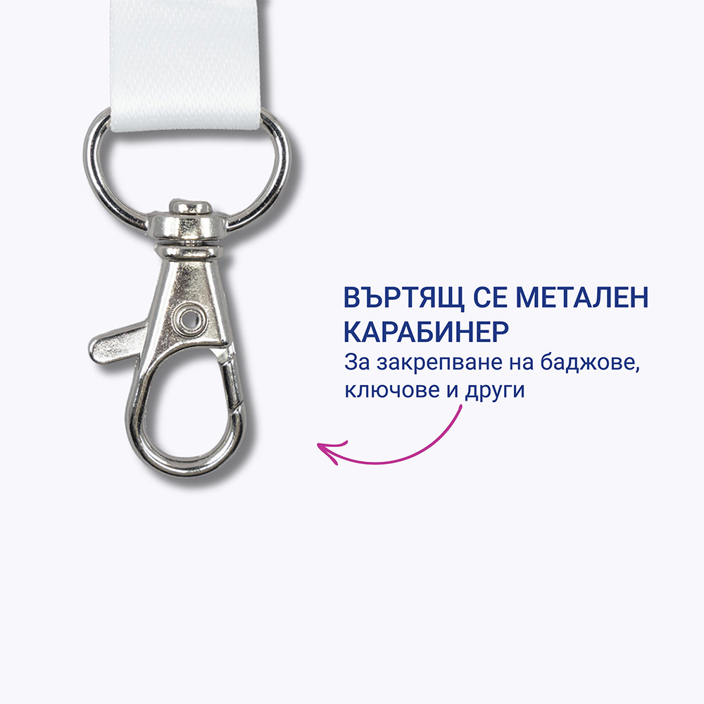 - Универсалност: Въртящата се метална кука позволява лесно закрепване както на баджове и карти, така и на ключове.