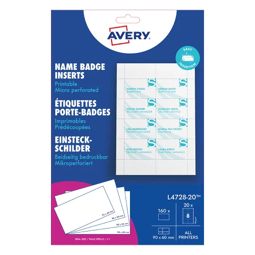 Създайте професионални и естетични баджове бързо и без усилия с висококачествените вложки на Avery Zweckform.
