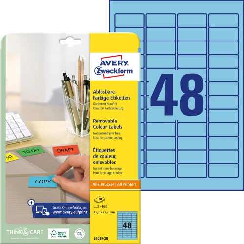 Самозалепващи етикети за многократна употреба Avery L6039-20.