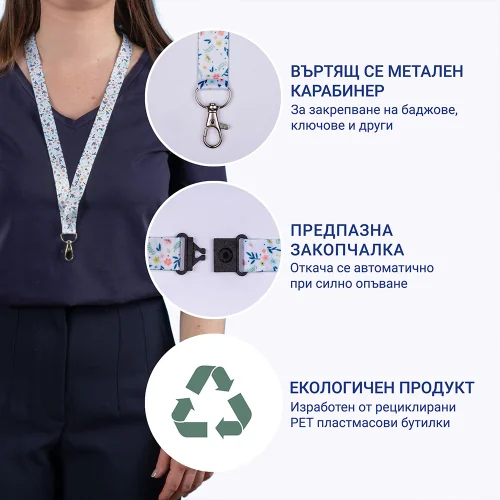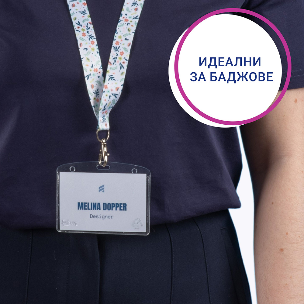 - Универсалност: Въртящата се метална кука позволява лесно закрепване както на баджове и карти, така и на ключове.