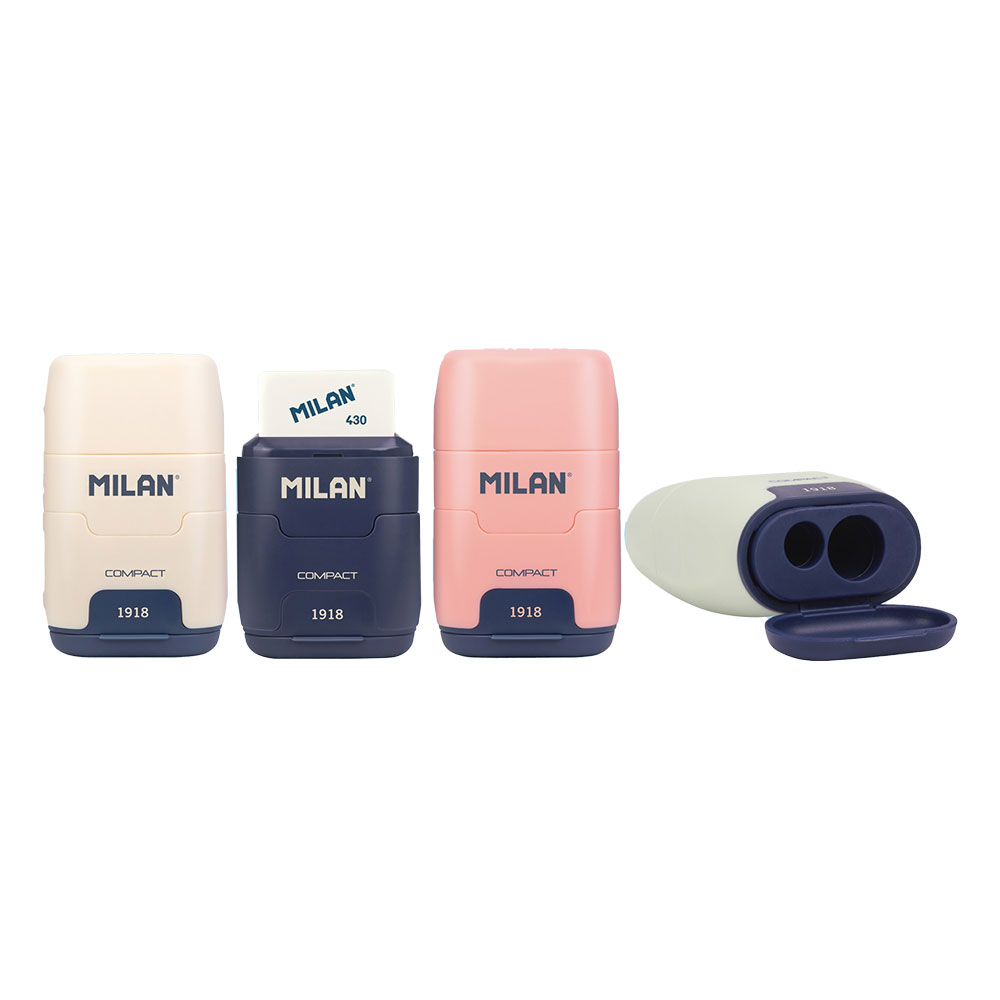 Върнете се към корените на най-добрите училищни пособия с колекцията "Since 1918". Този модел Compact съчетава модерната функционалност с ретро естетиката, която направи Milan световноизвестна марка. С вградената легендарна гума 430 и прецизна острилка, този инструмент е поклон към традициите и качеството, издържало теста на времето.