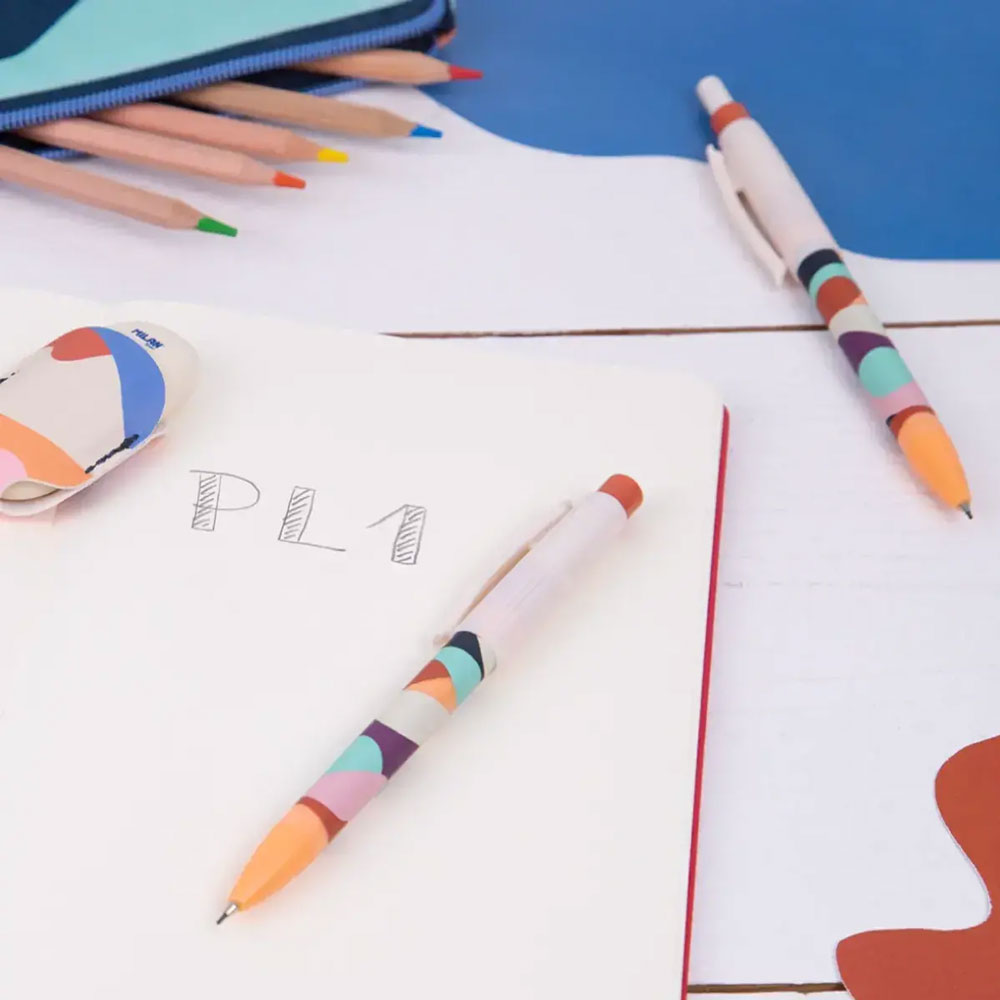 - Дизайн и качество: Съчетава стилна визия със стабилен захват без приплъзване за комфорт при продължително писане, а функционалността му се допълва от въртяща се масивна гумичка и надежден PL1 механизъм.