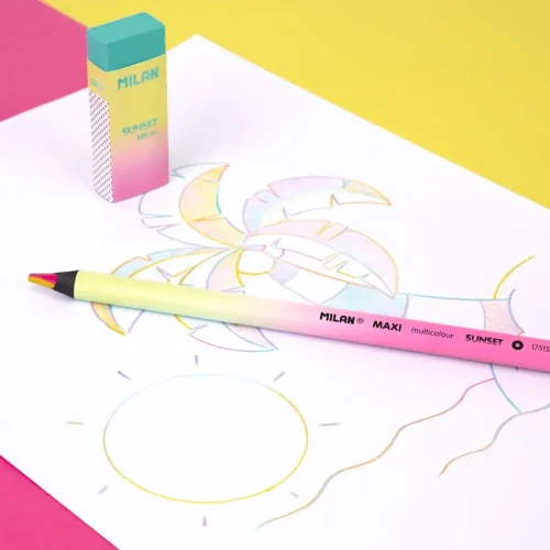 Добавете доза креативност и стил към вашето творчество с многоцветния молив от серията Sunset на Milan. Графит с три преливащи се цвята, позволява създаването на невероятни ефекти и уникални линии само с едно движение.