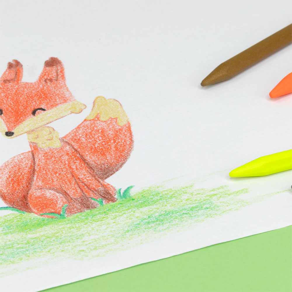 Открийте магията на восъчните пастели! Тези уникални моливи са направени изцяло от пастел, но са здрави и чисти като моливи. Триъгълната им форма е проектирана специално за малките ръчички, за да не се уморяват при дълго рисуване. А най-хубавото? В комплекта има два неонови цвята, с които рисунките ти буквално ще светят!