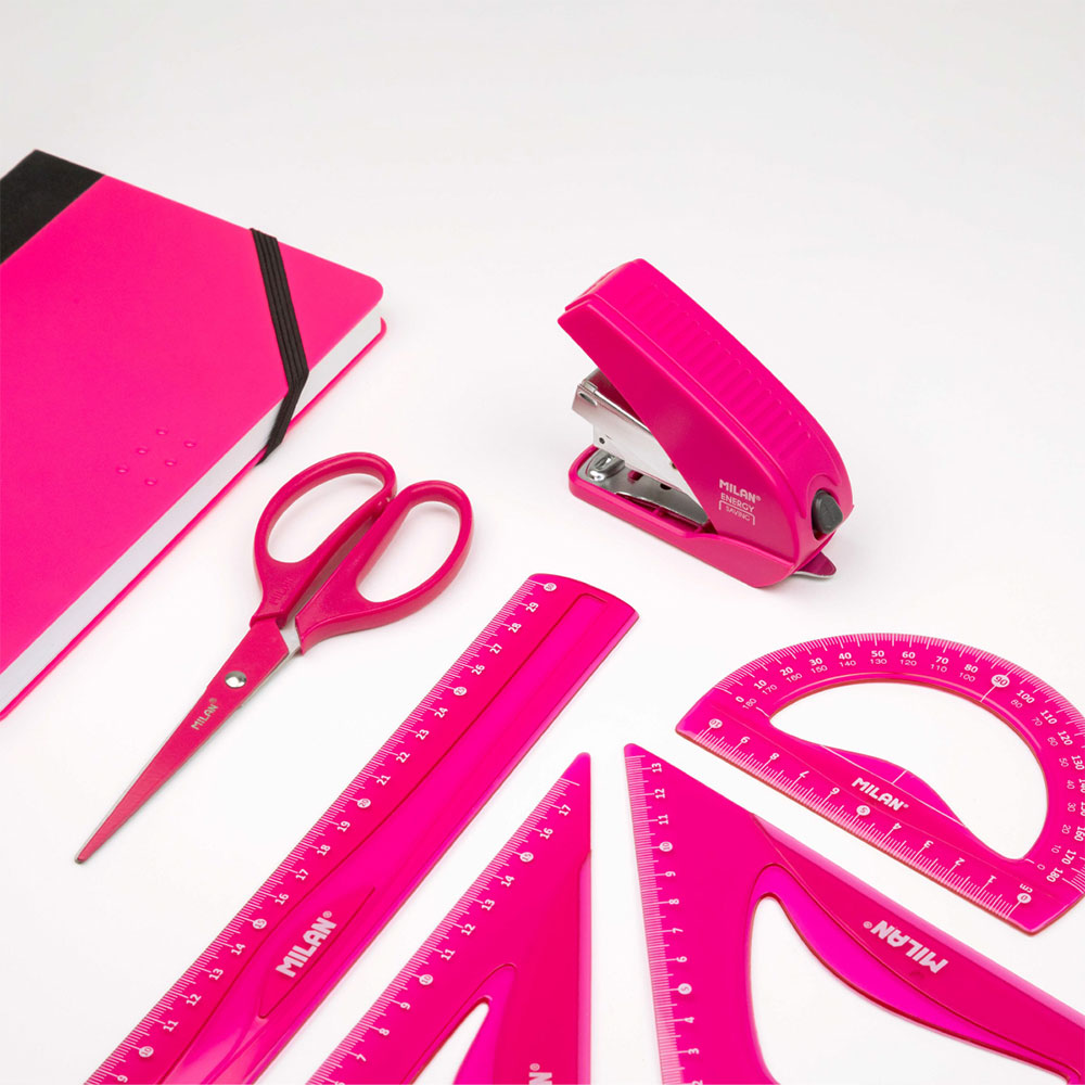 Добавете цвят и сигурност в учебния процес или работния ден с гъвкавата линия на Milan от серията Acid. Създадена да съчетава модерен дизайн в прозрачно розово с изключителна издръжливост. Благодарение на иновативния си материал, линията е практически нечуплива при нормална употреба, което я прави идеалния избор за ученическата раница.