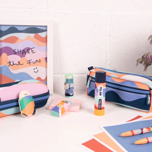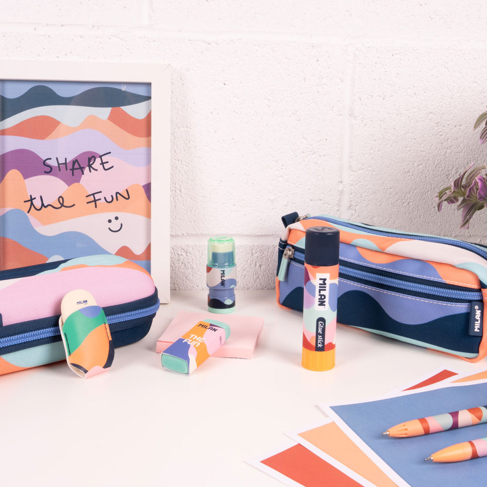 Сухото лепило The Fun на Milan е създадено да направи творческия процес по-лесен и вълнуващ. Основното му предимство е синият му цвят, който служи за визуален ориентир, гарантирайки, че няма да пропуснете нито едно ъгълче при лепене и е перфектно за деца и ученици, тъй като превръща прецизността в игра.
