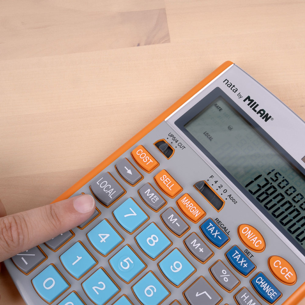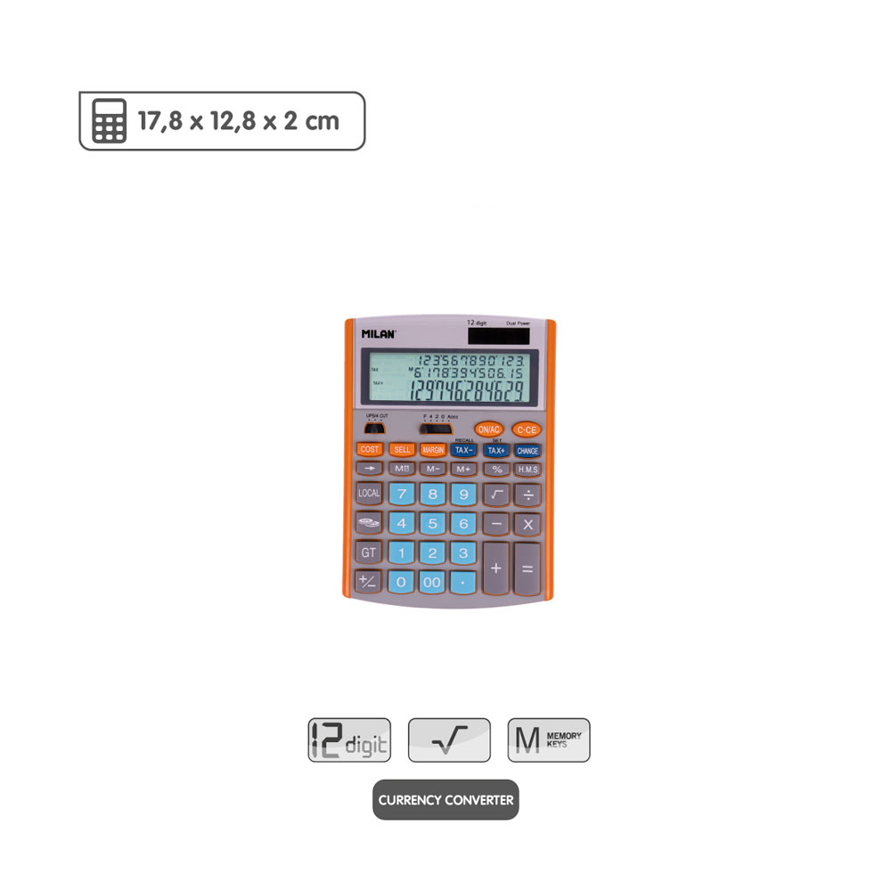 Този калкулатор е създаден за тези, които ценят времето и точността си. С ергономичен дизайн в контрастни цветове (сиво и оранжево), той не само изглежда професионално, но предлага и една изключително ценна функция – вграден валутен конвертор. Вече не е нужно да вадите телефона си, за да пресметнете курсови разлики – направете го с едно натискане на бутона.