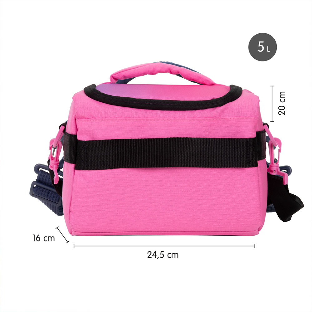 Обичаш ли да имаш пълноценен обяд и достатъчно място за плодове и напитки? Голямата термочанта от серията Sunset е тук, за да събере всичко! С нейните 5 литра капацитет и вълшебните преливащи цветове в розово и жълто, тя е едновременно супер практична и истински моден аксесоар.