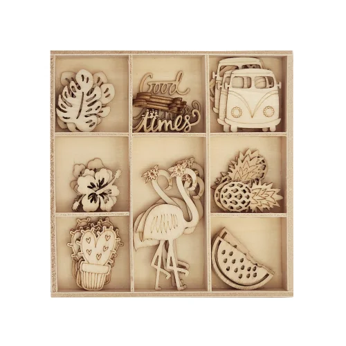 - Практично съхранение: Декорациите пристигат в красива и здрава дървена кутия с отделения, която помага за лесното организиране на Вашите материали.