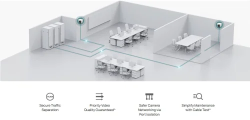 - VLAN, изолация на портове, тестване на кабели, QoS за надеждни мрежи за видеонаблюдение