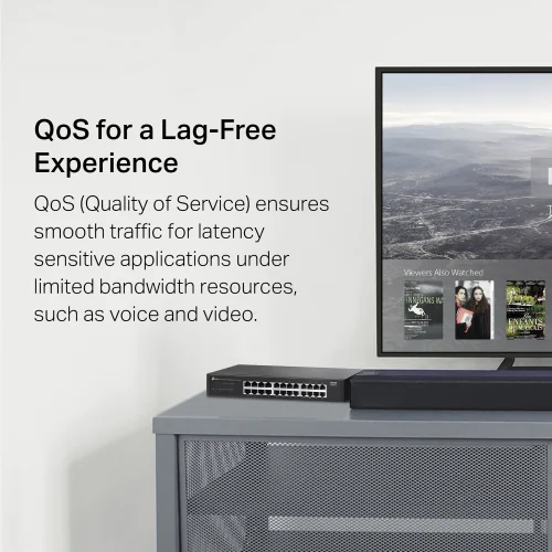 QoS (Quality of Service) осигурява плавен трафик за приложения, чувствителни към забавяне, като глас и видео, дори при ограничен капацитет на мрежата.