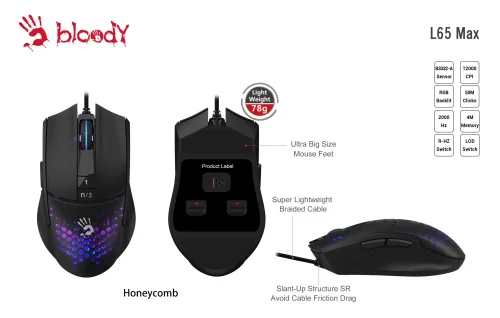 Създаден да предефинира стандартите за точност и скорост, този страхотен двигател на мишка смазва конкуренцията. Проектиран да ви даде предимство в интензивна игра. С устройствата Bloody реагирате по-бързо и винаги сте крачка пред опонентите си.