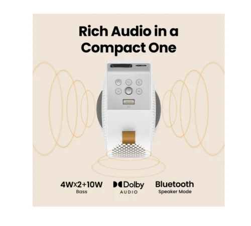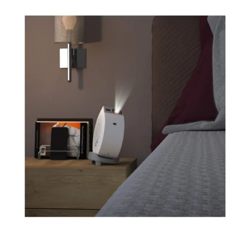 BenQ GV50 е преносим лазерен проектор с 1080p резолюция и 500 ANSI лумена яркост, предназначен за легло и таванна проекция. Той има гъвкава основа, която позволява 135° вертикална и 360° хоризонтална настройка, така че да можете да гледате филми удобно от всяка позиция.