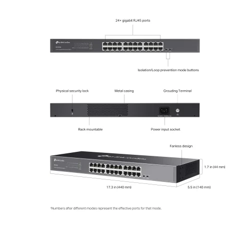 24-портов Gigabit неуправляем настолен комутатор TP-Link Omada DS1024G