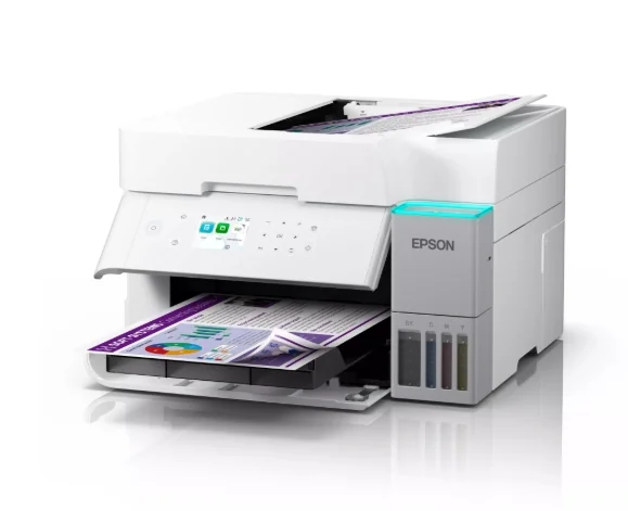 Дисплеят за нивото на мастилото отпред означава, че е лесно да се види кога най-накрая трябва да се напълни, а стилната синя светлина върху капака на резервоара за мастило гарантира, че можете да следите състоянието на принтера с един поглед. В кутията е включено мастило, достатъчно за до 3 години. С включените мастила можете да отпечатате до 15 100 черно-бели и 5 500 цветни страници.