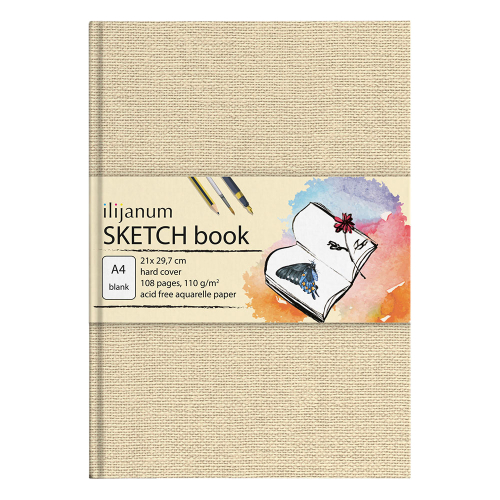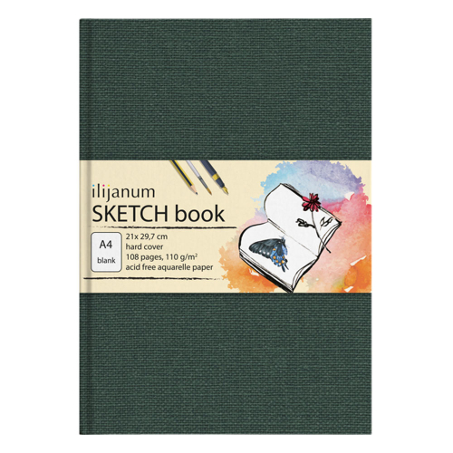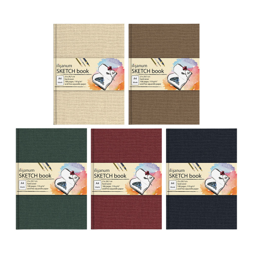 Sketchbook Ilijanum Aquarelle 110g format A5 Hard vinyl covers in 5 colors. Watercolor paper 110g.