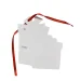 Gift tags with Christmas motifs and a red satin ribbon for attachment.