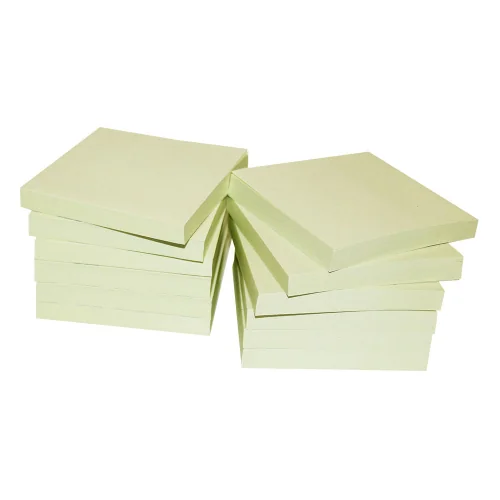 Self-adhesive notes. Marking notes with size 75/75mm. Packed in a recyclable cardboard box. 12 cubes of 100 sheets. Pastel yellow color. FSC™ certified Blue angel certified