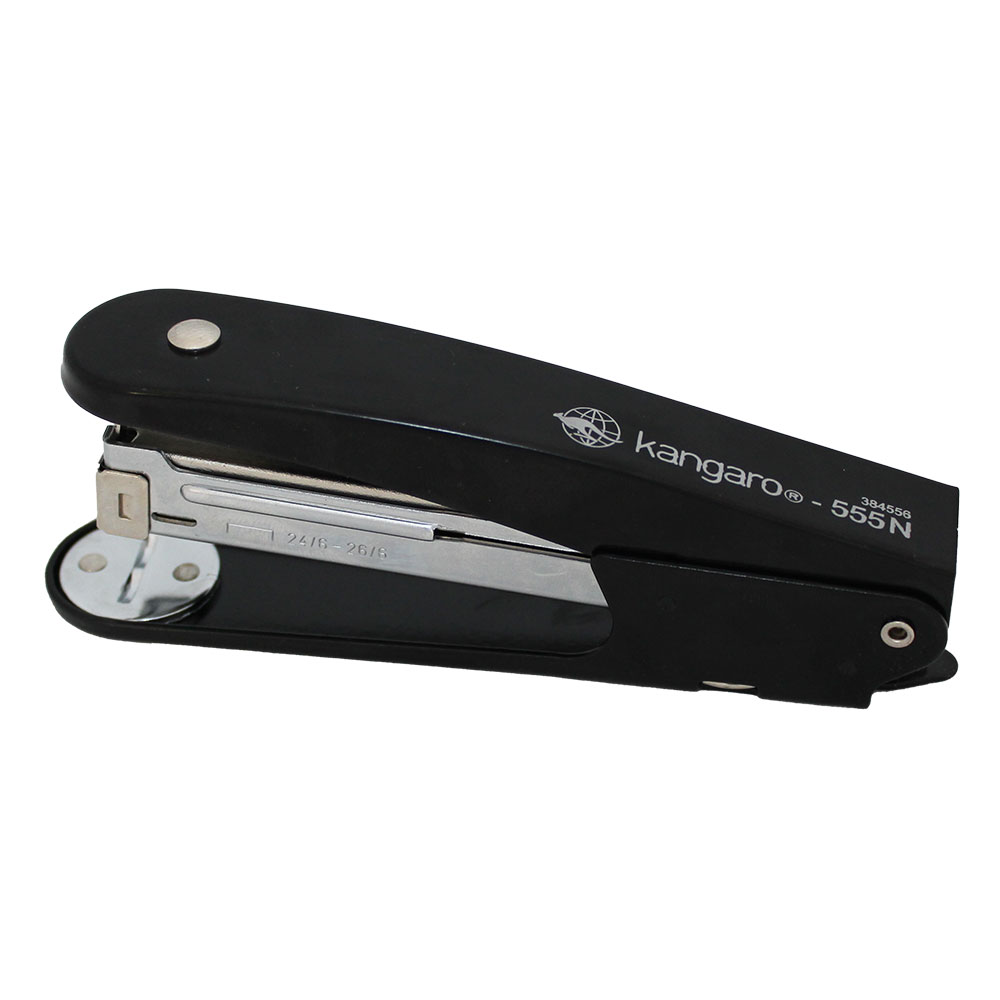 All-metal body. The stapler has a built-in anti-staple for convenience. Adjustable clamping depth 85 mm. Front loading system with floating rail. Works with 24/6 and 26/6 staples, and clamps up to 20 sheets. Color: assorted