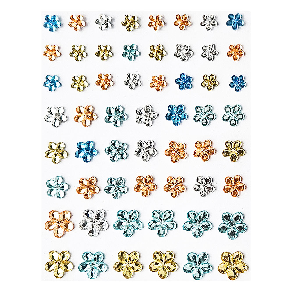 Self-adhesive decorative elements in the shape of a flower. Suitable for decorating seasonal cards, gift boxes and bags, wedding decorations and other creative projects.