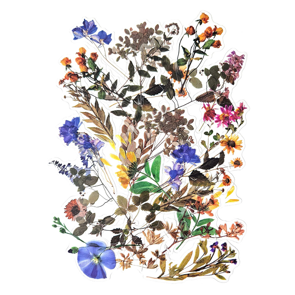 Transparent stickers with delicate wildflowers. Suitable for decorating seasonal cards, gifts, gift bags, glass jars or planners