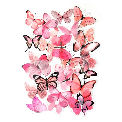 Transparent stickers with beautiful pink butterflies. Suitable for decorating seasonal cards, gifts, gift bags, glass jars or planners