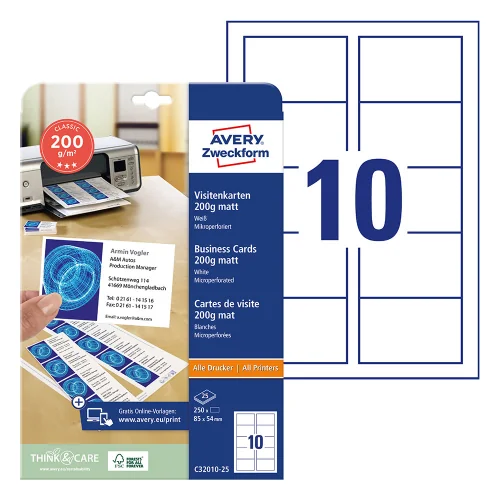 Create your professional business cards quickly and easily with the free Avery Zweckform software. Choose from a rich gallery of ready-made templates or upload your own design - all you have to do then is simply print them.