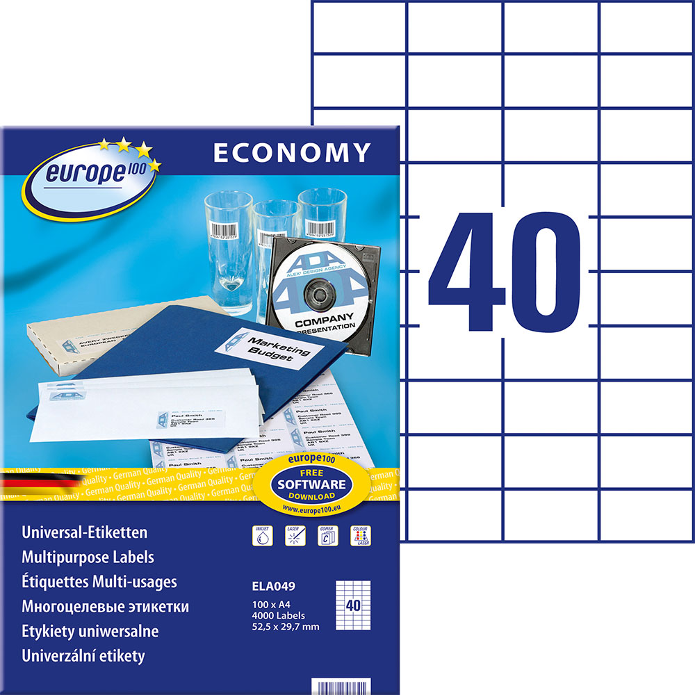 Ensure flawless printing and professional organization with the versatile labels from the Europe100 series.