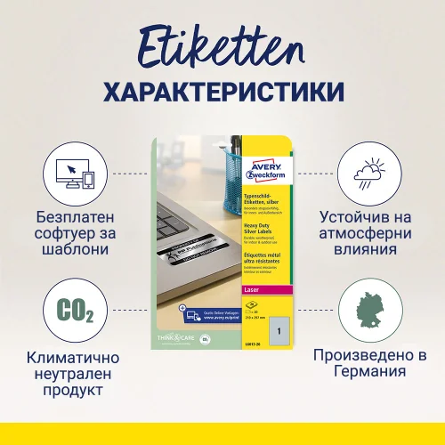 The professional solution for durable marking of inventory and equipment. L6013-20 silver polyester labels are designed to withstand the toughest industrial conditions while giving your products a high-quality metallic finish. They are the ideal alternative to expensive engraved metal plates.