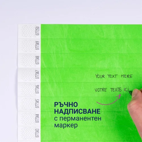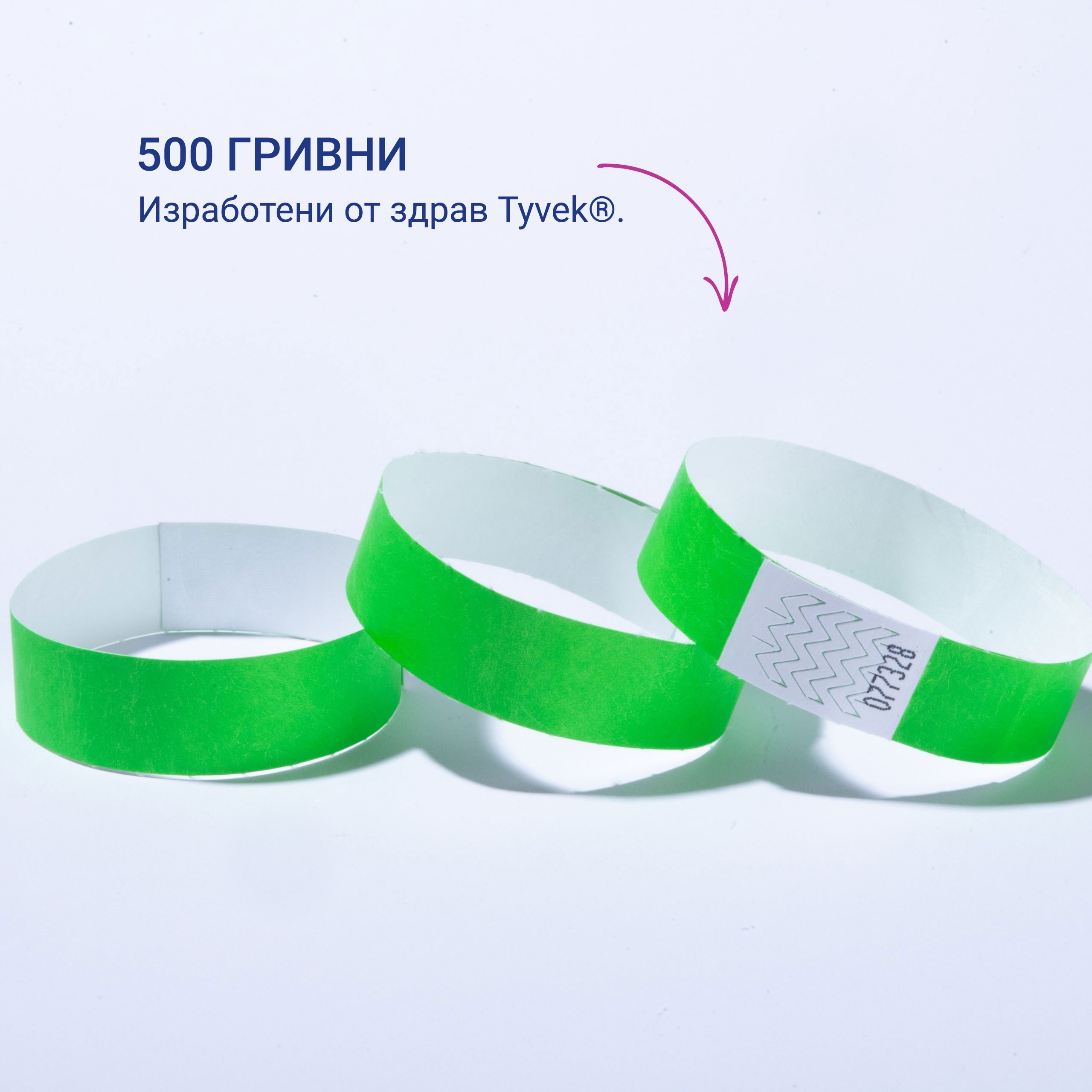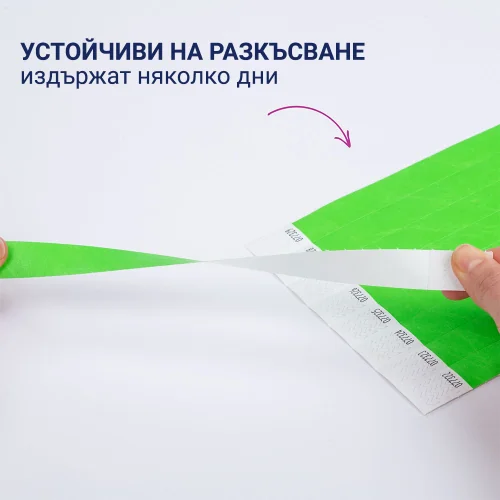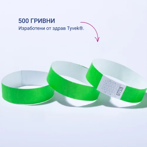Made from the legendary Tyvek® material, they combine the lightness of paper with the strength of synthetics - they are practically impossible to tear by hand and are completely waterproof. The bright neon color allows security and staff to identify authorized guests from a distance, even in low light.