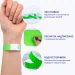 Unlike printable sheet options, these are ready-made neon green Tyvek® wristbands, supplied on fan-shaped strips, which are designed for hand-lettering or direct use.